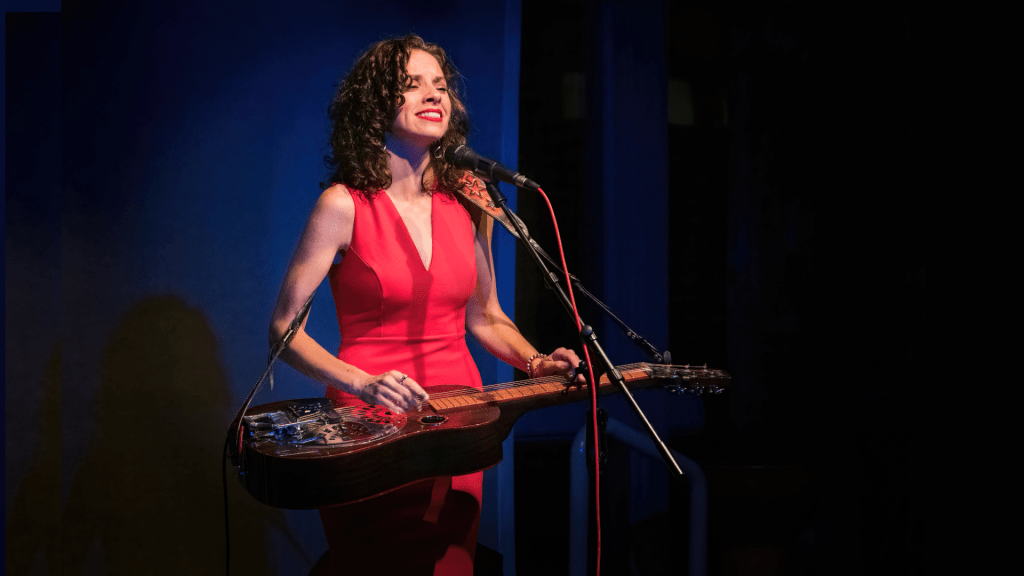 Abbie Gardner is an amazing resonator guitarist and singer, formerly of the excellent Americana trio Red Molly. She’ll be appearing at the Parlor Room Sat 2/10 for a solo show as well as a songwriting workshop prior. We began our segment with “Down the Mountain” from her latest release, “Dobrosinger”.
