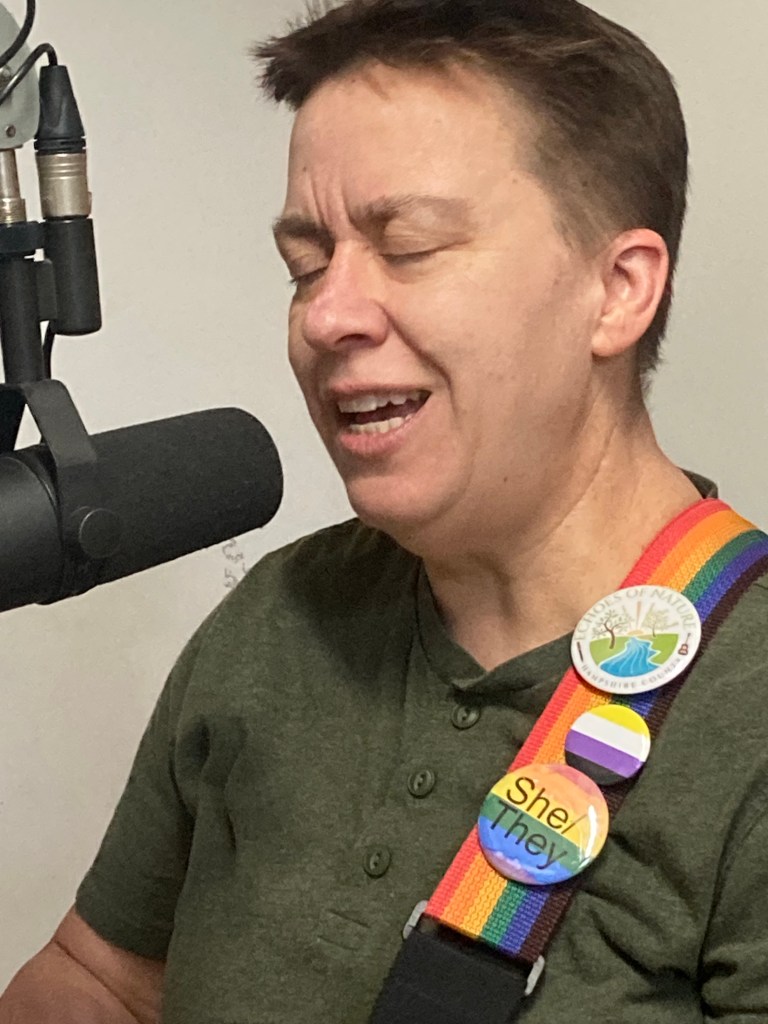 We began our segment with a live in-studio version of Martin’s “Bride of Frankenstein” and finish with “Every Quiet Night” dedicated to Emily Dickinson. In between these live performances we chat about Puppetry with Amy West; they have designed a “crankie” of puppet images to these songs. The trio transform these literary monsters into icons of resistance, complexity and queer power. We discuss “Monsters as Metaphor” with Martin and Hanna. Writers of horror allow readers to explore and understand their deepest fears and anxieties. They represent the unknown, the dangerous and “the other”.
